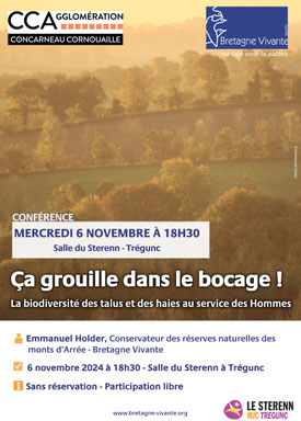 En partenariat avec Bretagne Vivante, une conférence intitulée Ça grouille dans nos bocages sera prochainement proposée. Toutes les informations seront bientôt disponibles en ligne.